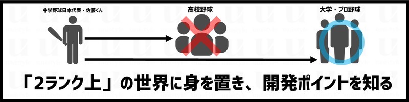 具体的に言うと、中学校日本代表4番バッターの佐藤くんがいたとします。彼をより成長させるための方法として、監督は高校の練習に入れようとしたとします。私はそれは間違っていると思っています。
