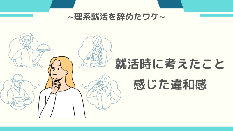 そんなこんなで理系就職に違和感を感じ始めていた僕が、就活を進める中で考えたことや感じた違和感について以下でお伝えしていきます。
