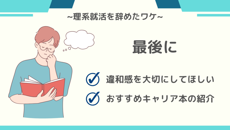 「せっかく理系出たのにもったいない」と言われたこともありますが、はっきり言って「違和感感じてるのに進むほうが今後の人生も踏まえてもっともったいない」です。