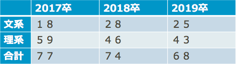 北陸電力の過去3年分の文理別採用人数(※大卒および修士のみ)は次のようになっています。