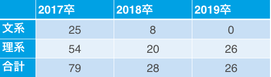 武田薬品工業の過去3年分の文理別採用人数は次のようになっています。