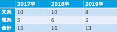朝日放送の過去3年分の文理別採用人数(※大卒および修士のみ)は次のようになっています。