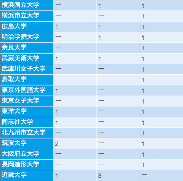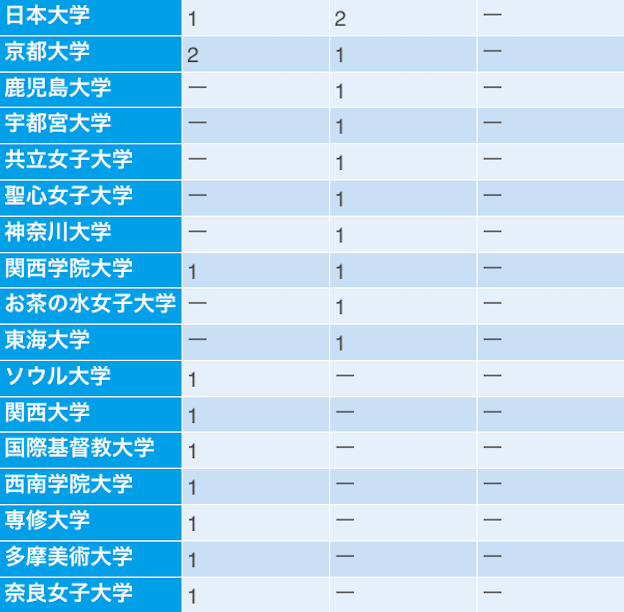 東洋経済新報社「就活四季報」2020年版より毎日新聞社の採用実績大学は以下のようになっています。