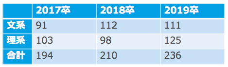 TISの過去3年間の文理別採用人数は以下のようになっています。