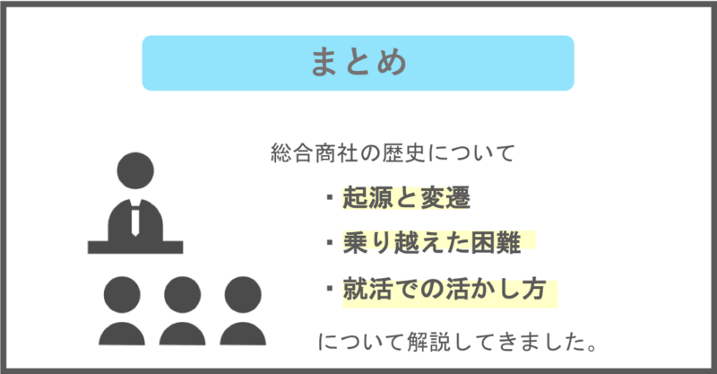 いかがだったでしょうか。総合商社の歴史についての理解と就活での活かし方について参考にしてもらえたでしょうか。