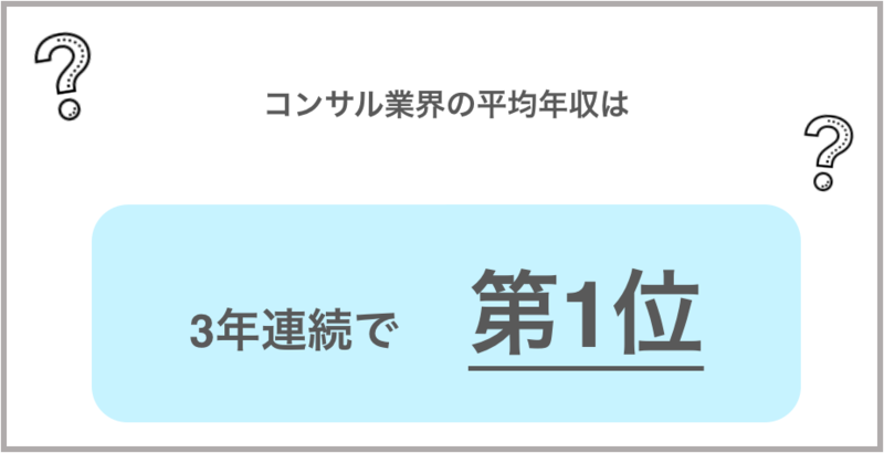 本調査では、3年連続でコンサル業界が1位、業界平均600万円の2倍よりも高い結果を誇っています(調査対象は、外資系コンサルだけでなく、日系コンサルも含んでいます)。