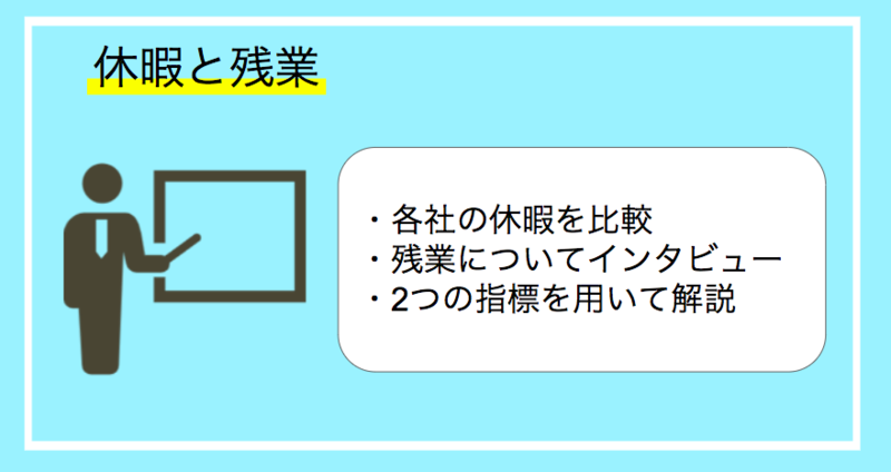 そこで、以下の観点から休暇と残業、各種制度を見ていくこととします。