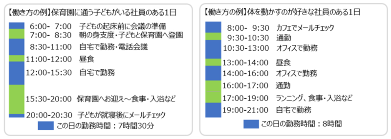 上図から見て取れるように、育児で忙しい女性の方でも仕事と両立できるような働き方が可能です。