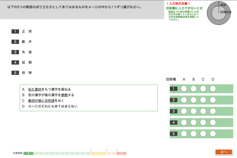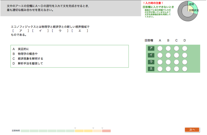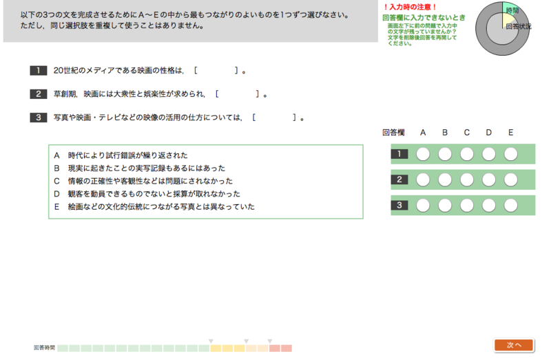 複数提示された文章について、それぞれ後に続くものを選択するというもの。選択肢が重複することはないため、瞬時に判断できるものからスピーディに潰していきたい。