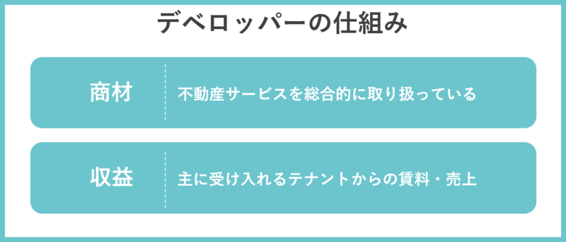 デベロッパーのビジネスモデルに関しては、以下の記事で詳しく解説していますので、参考にしてみてください。