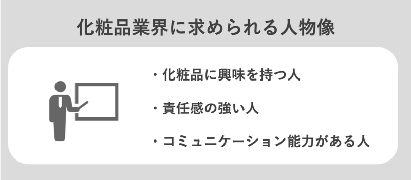 前述したように化粧品業界には、様々な職種が存在しており、それぞれで求められる人物像・素養が異なります。まずは業界全体として求められる人物像を確認しておきましょう。