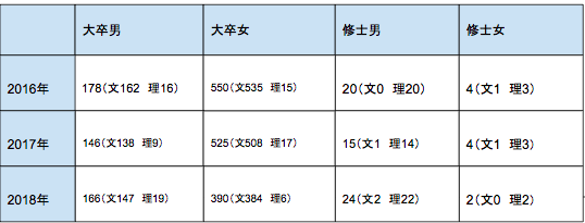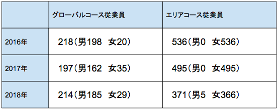 男女比を見ると女性の採用数が男性のおよそ3倍前後となっています。