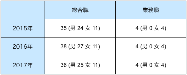 就職四季報によると職種ごとの採用人数は下記の表の通りです。