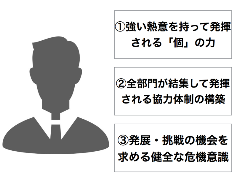 このような3つの素養を持った人材が、花王ウェイを体現できる人材・花王が求める人材であると考えられます。