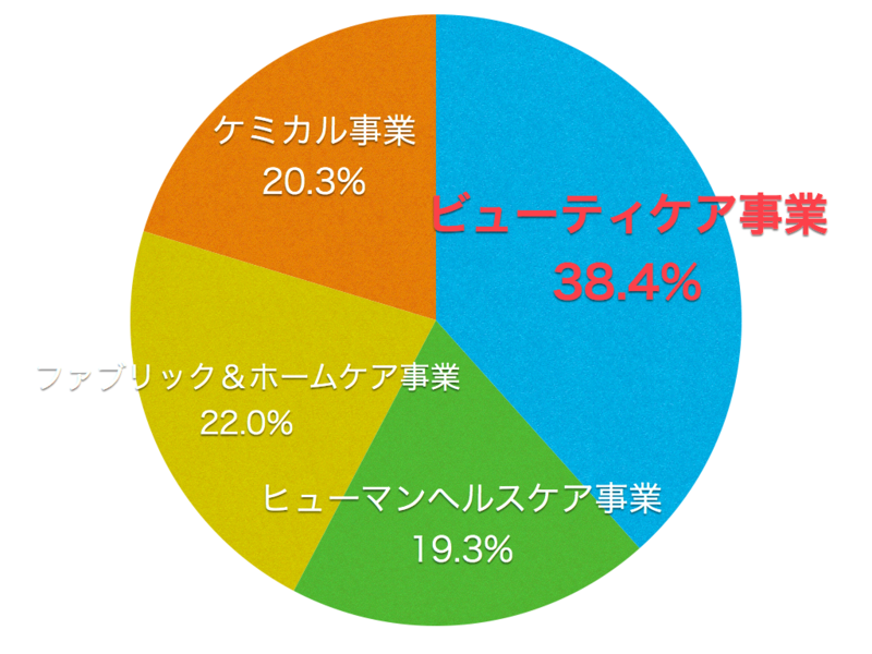IR資料から2017年度の売上高のポートフォリオを参照すると、全体の4割近くをビューティケア事業(化粧品・スキンケア・ヘアケア)で稼ぎ出していることが読み取れます。同事業は古くからの花王の強みとされていますが、2017年度は業績としては芳しくなく、収益の分散化を目指す姿勢もあるようです。