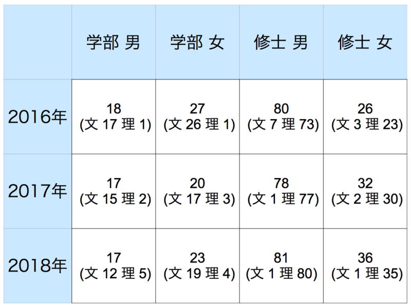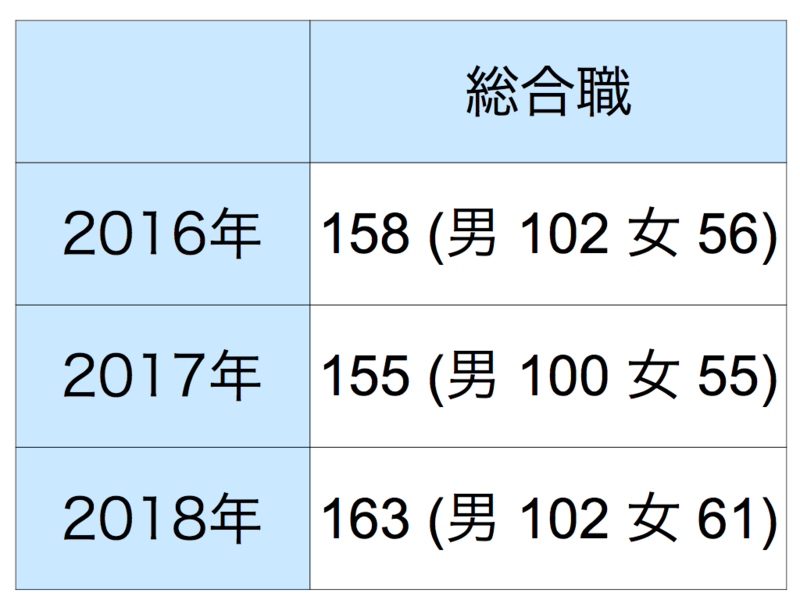 細かい男女文理別採用実績は以下の表で表しています。
