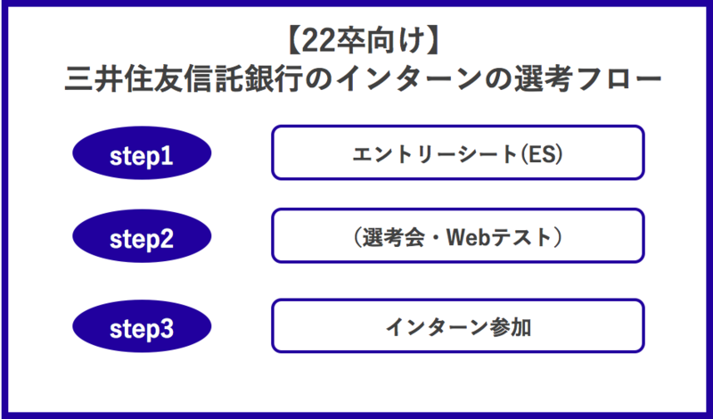 ここでは、三井住友信託銀行の22卒向けインターン選考フローについて紹介します。